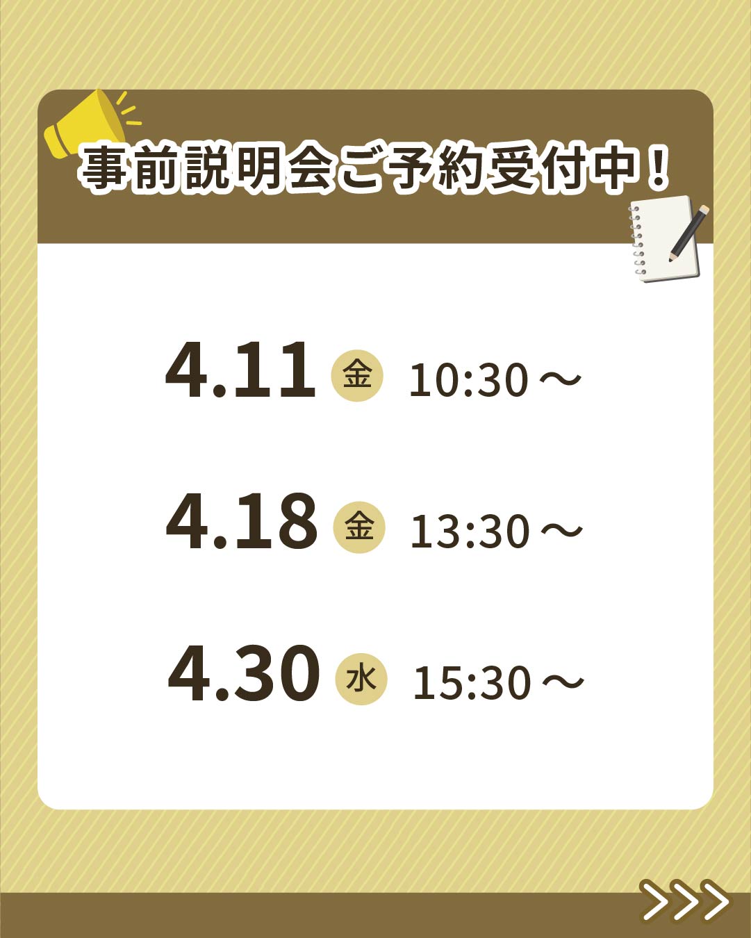 | 目的 | 対象者に安心感を与えつつ、必要な情報が一目で理解でき、説明会への参加を促す。 |