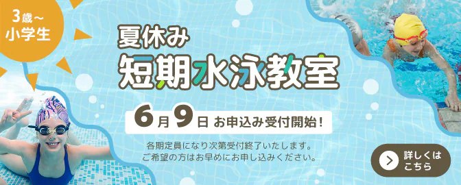 子供向けのプログラムということが一目見て伝わる、ポップなデザインにしました。 太陽・プール・波・泡などの要素を散りばめ、夏らしい印象に仕上げています。 また、各要素の並べ方も注意して、視線の動きに沿った配置になるよう意識しました。 |