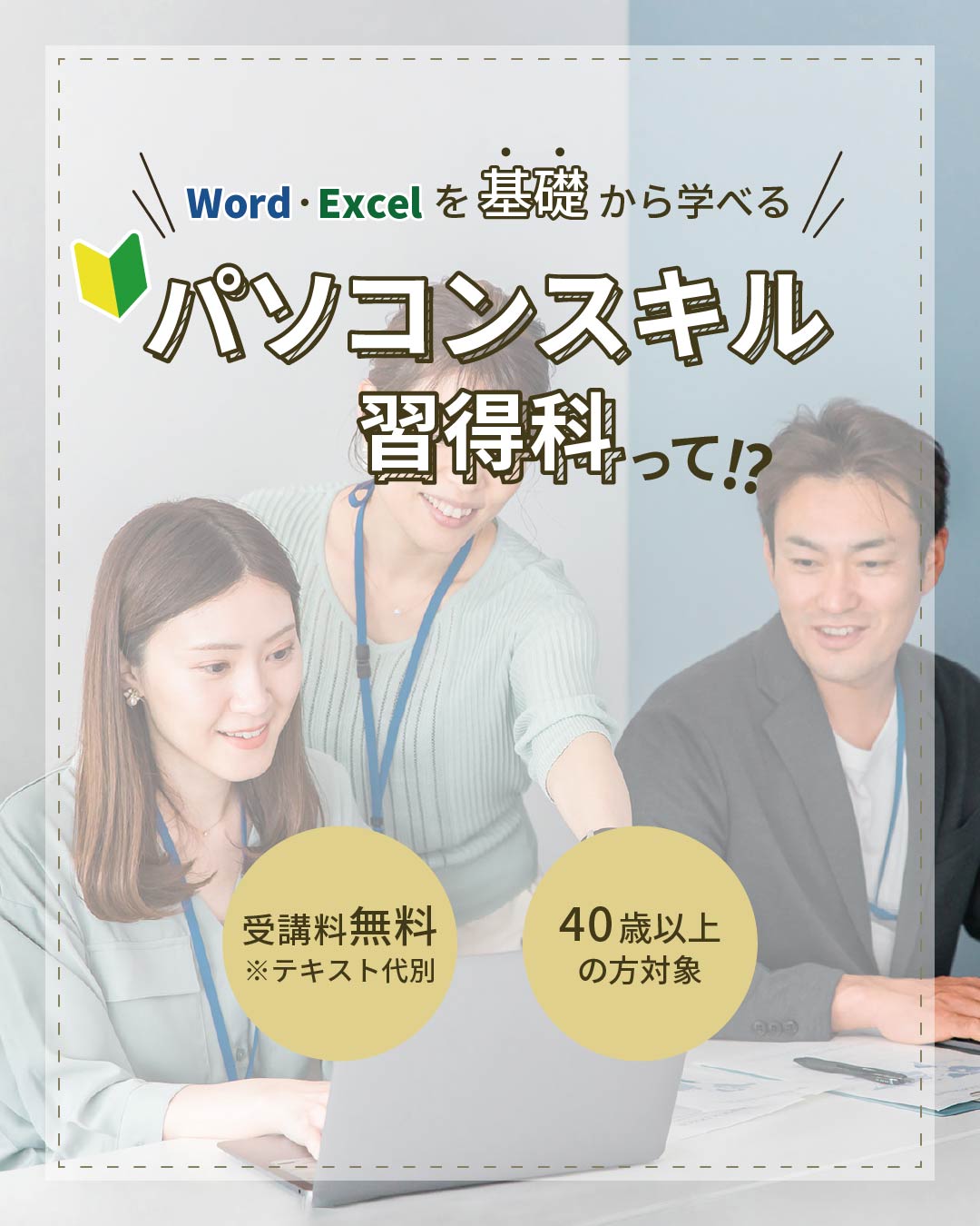 | ターゲット | パソコン操作に苦手意識がある初心者。再就職・スキル習得を目指す40歳以上の方。SNSで流し見をしながら情報を得る層。 |