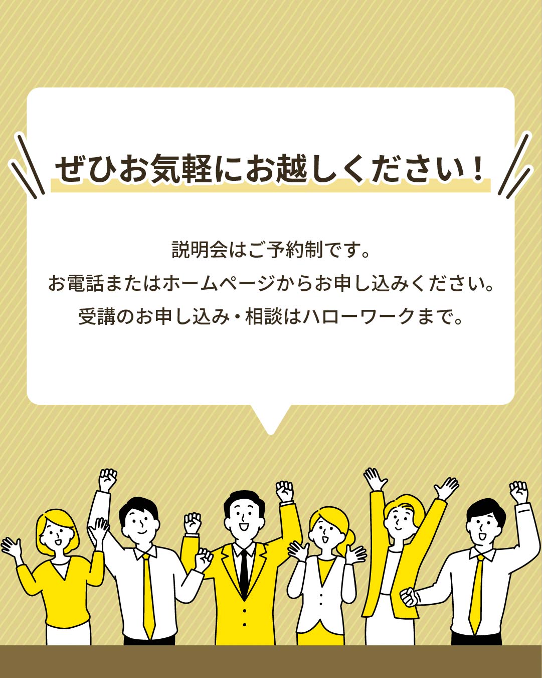 | 目的 | 対象者に安心感を与えつつ、必要な情報が一目で理解でき、説明会への参加を促す。 |